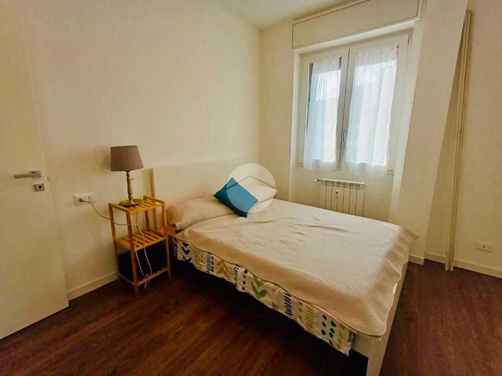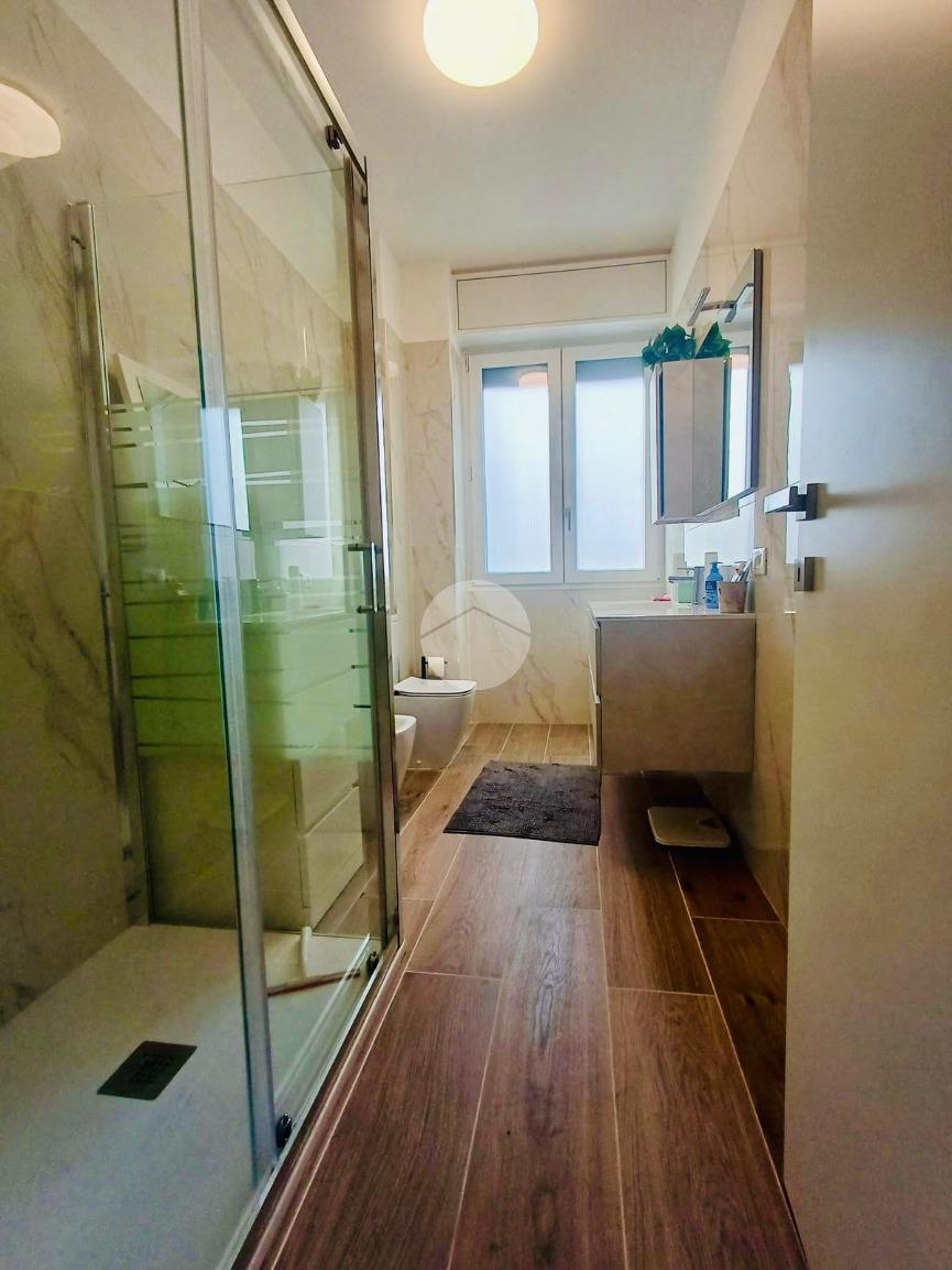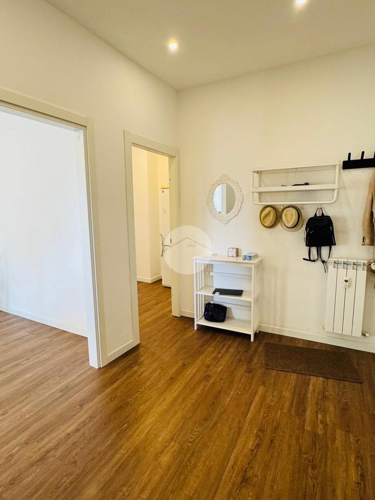 L'immobile è stato oggetto di una recente e completa ristrutturazione interna. La zona giorno si compone di un luminoso soggiorno con accesso a un ampio balcone e di una cucina separata servita da un secondo balcone di servizio. La zona notte comprende due camere da letto di ampie metrature e un bagno finestrato, rifinito con sanitari sospesi e box doccia. La proprietà è completata da un funzionale ripostiglio attrezzato con attacco lavatrice e da una cantina di pertinenza.